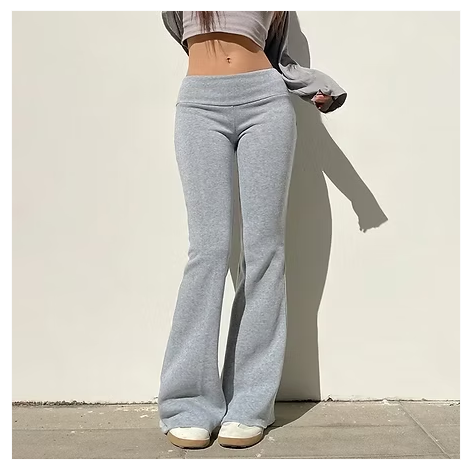 Casual Sexy Basic Solid Flare Pants Y2K Slim Low-Waisted Boot Cut Pants Women